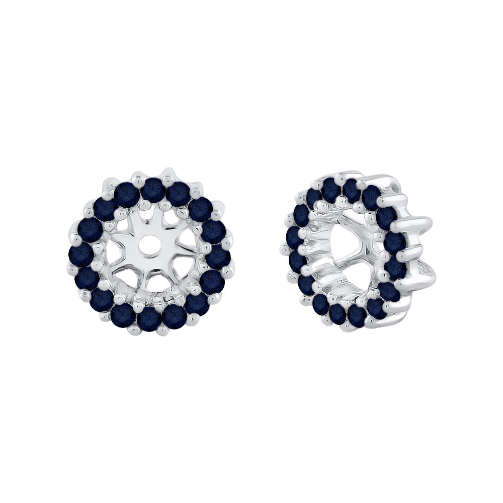 Transform your simple studs with these lovely earring jackets. Simply slip your earring post through the hole, and your earring is instantly haloed by dainty round cut diamonds set in gold. This pair of earring jackets can hold up to 1 ct. (total weight) studs. Studs are not included. This item might contain diamond or gemstones that have been treated to enhance their appearance or durability.