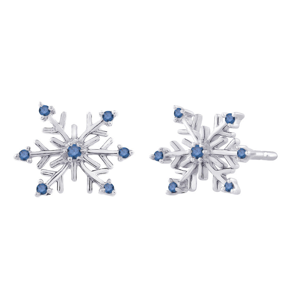 Make a declaration of style with these elegant stud earrings. A beautiful stone is set in a gleaming gold or sterling silver. Sparkling diamonds surround the center stone on the this beautiful, fun snow flake. An absolute style statement, these earrings are the perfect piece for any occasion. This elegant style adds the look of luxury to your outfit; it will take you from day to night in style, making the perfect accessory for a date or cocktail party.