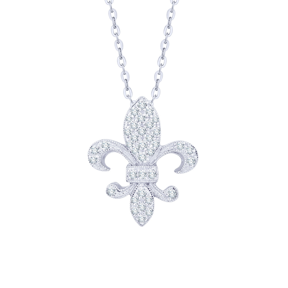 KATARINA 1/6 cttw Diamond "Fleur-De-Lis" Milgrain Pendant Necklace