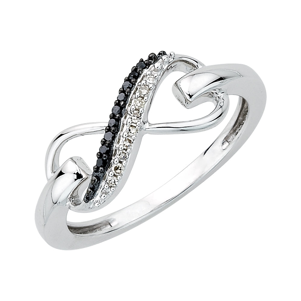 Contrasting black and white diamonds double the appeal of Katarina's Two Row Diamond Infinity Ring. Set with round brilliant cut diamonds in sterling silver, this romantic design is at once sexy and elegant; ready for a stylish evening out.