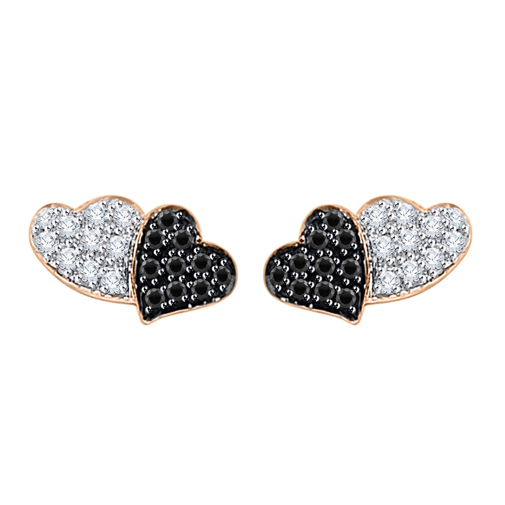 KATARINA Black and White Diamond Heart Earrings (1/5 cttw)