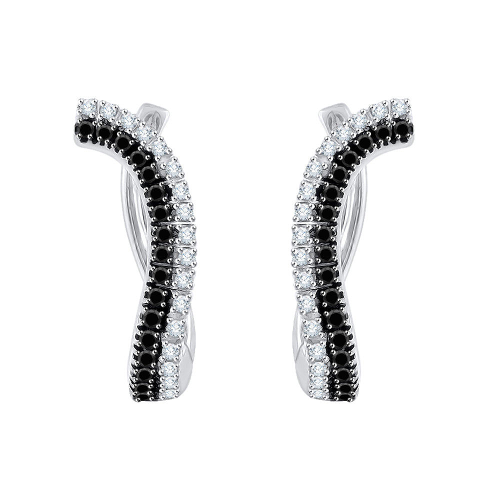 KATARINA Black and White Diamond Hoop Earrings (3/4 cttw)