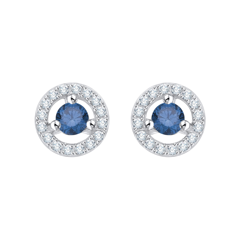 KATARINA Center Blue and White Diamond Halo Earrings (1/2 cttw)