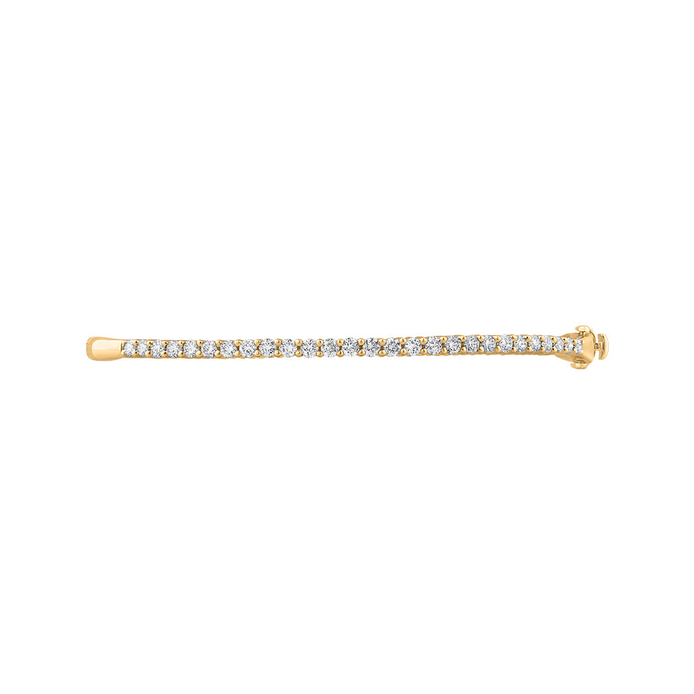 Bring the elegance of 14k gold to your wrists with this diamond bangle bracelet. With a beautiful design containing round cut diamonds, this bangle bracelet makes the perfect accessory for an elegant and formal night out or even for a touch of fine taste to a casual outfit for a lunch date.