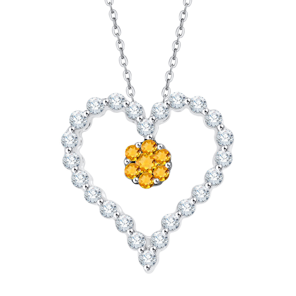 KATARINA 1/4 cttw Gemstone and Diamond Heart Pendant Necklace
