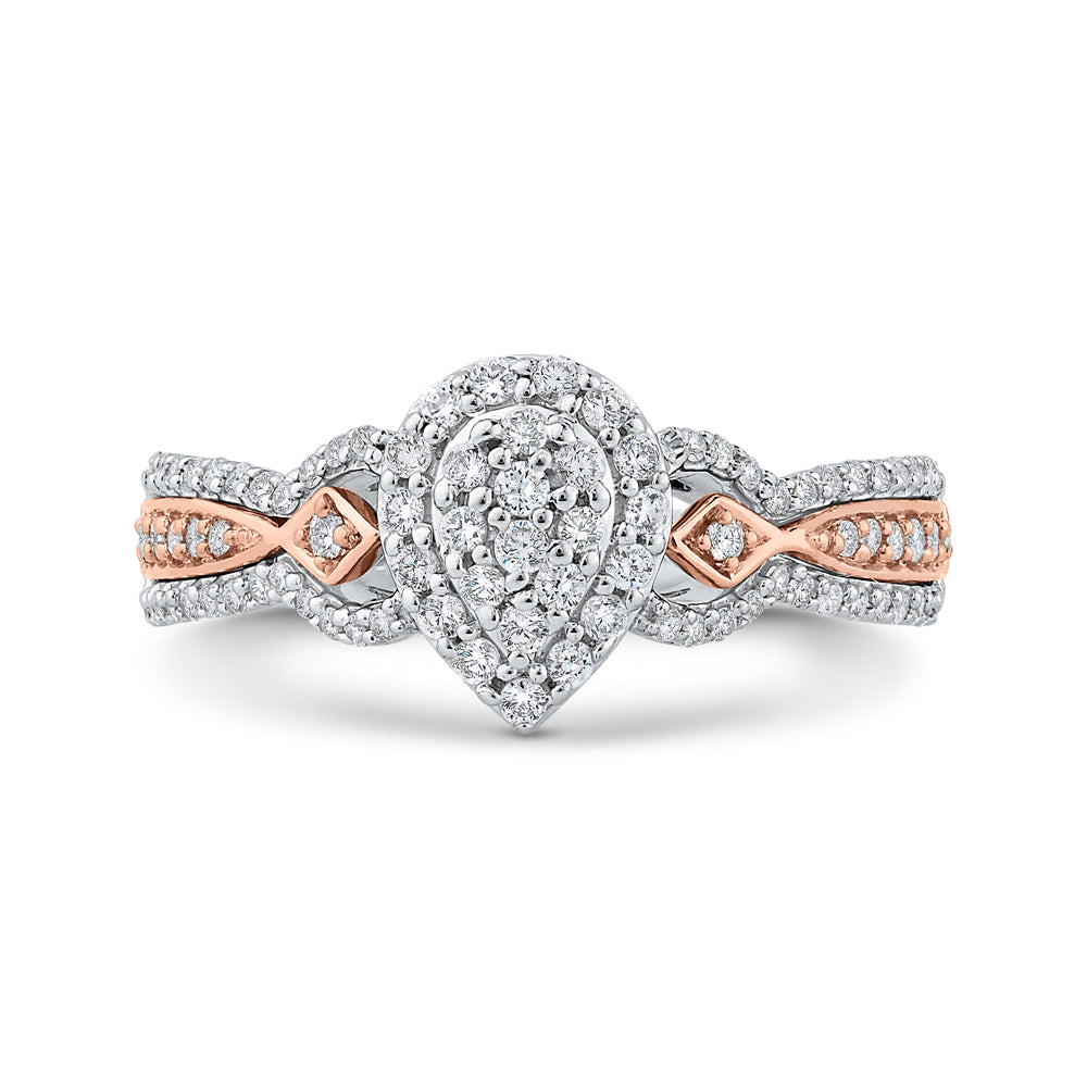 A Brilliant addition to her jewelry wardrobe, this ring is an amazing look of love. This design features a pear-shaped cluster of white diamonds surrounded by a frames. The ring is crafted from 10k gold and finished with high polished shine.