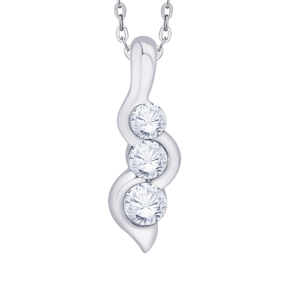 KATARINA 1/2 cttw Half-Bezel Set Three Stone Graduating Diamond Pendant Necklace