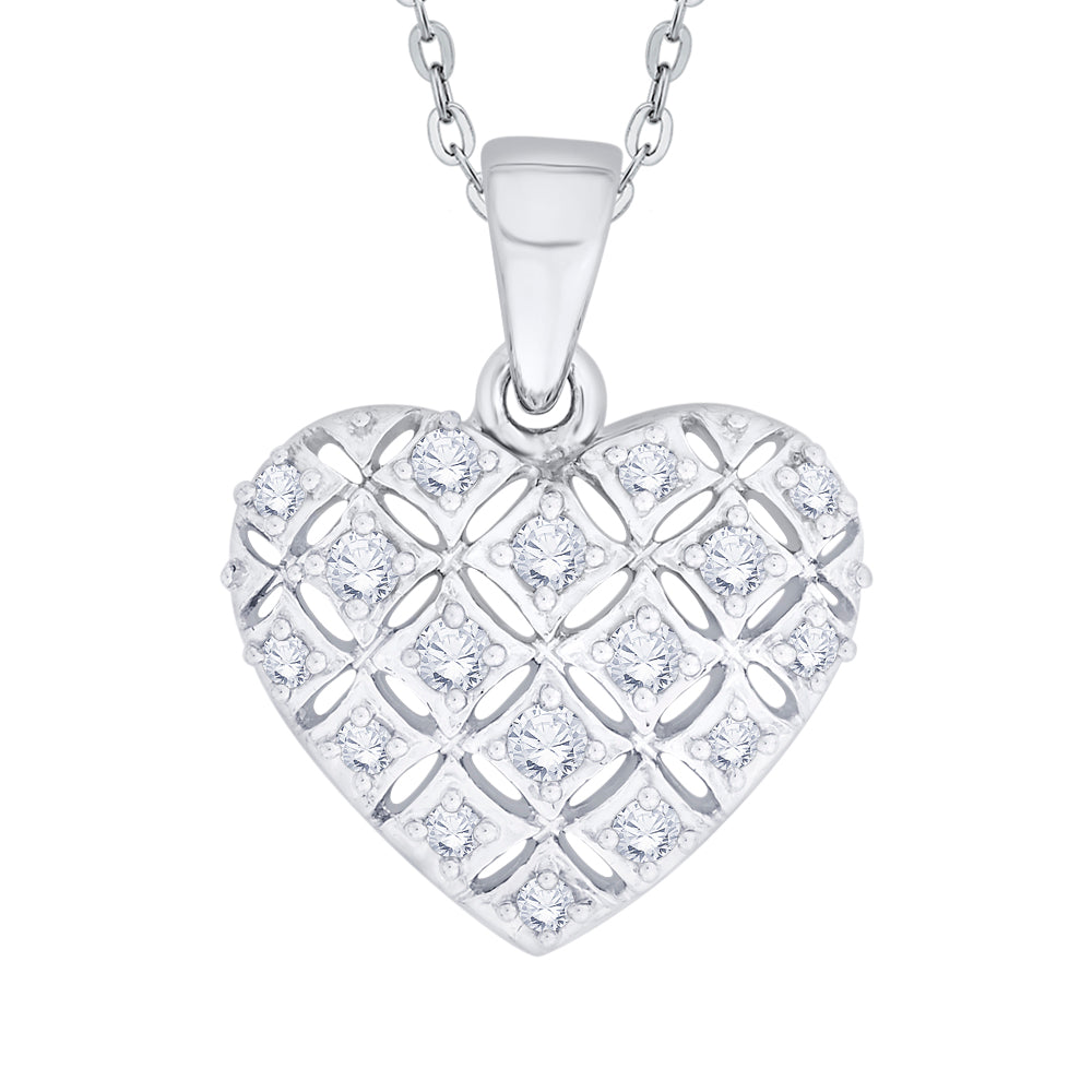 This romantic and trending heart shaped diamond pendant is gorgeously rendered in 14k,10k gold and sterling silver and studded with sparkling round diamonds. Heart is a symbol of love and joy. A classical and charming heart diamond pendant is the best jewelry for all occasions and outfits.