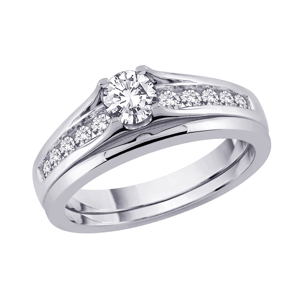 It's a special moment. Bow down on your knees hold her hand and promise to give her unconditional love for life with this simple and lovely engagement set to find the answer you dreamed of, and waited for. This beautiful engagement set is made in 14k white gold with diamonds and a sparkling center stone.