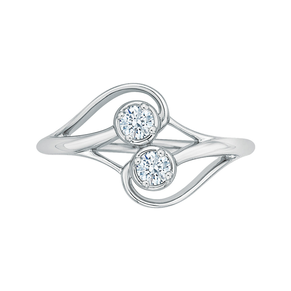 Two round-cut diamonds are stacked atop each other to form this unique and sparkling ring The ring is crafted of 14k white gold for high style and sophistication.
