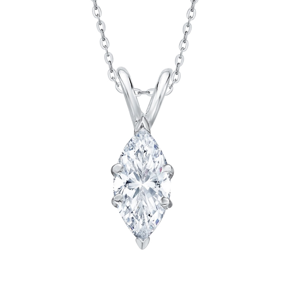 3/8 ct. E - SI2 Marquise Cut Diamond Solitaire Pendant Necklace in 14K Gold