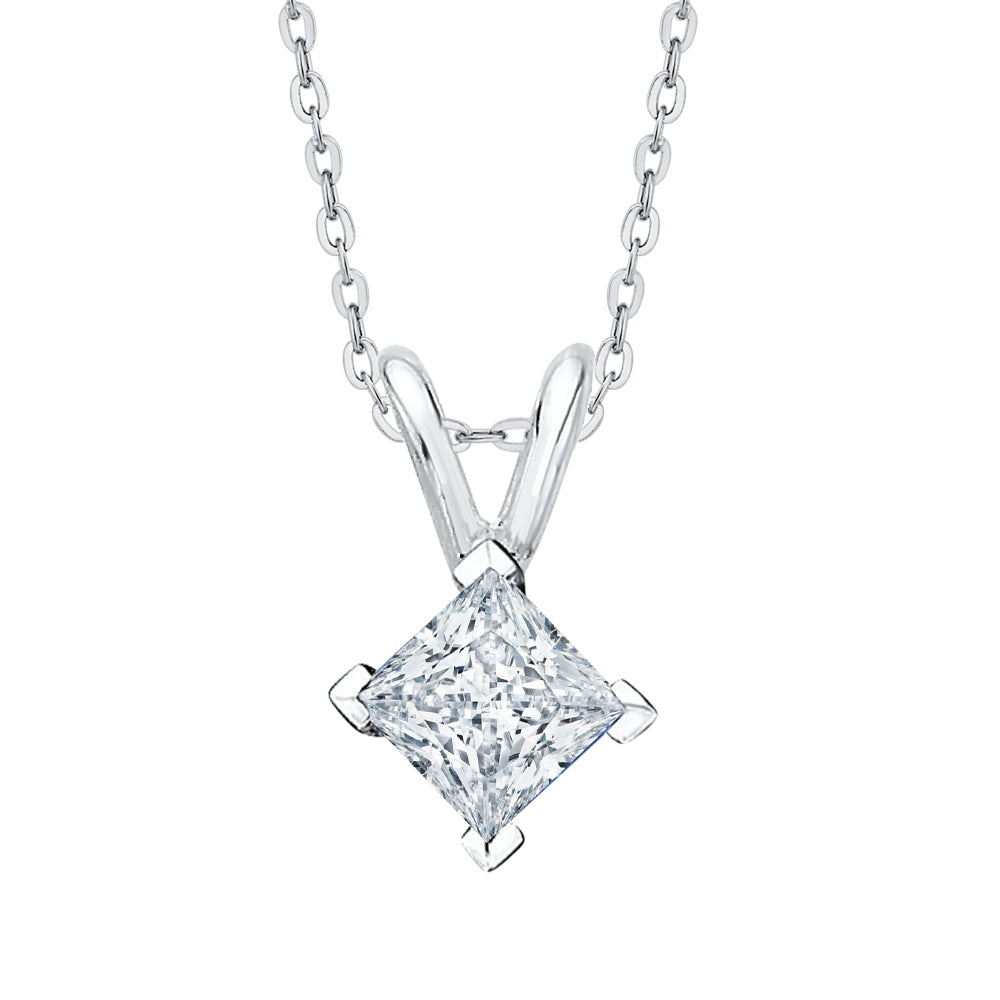 A single diamond solitaire pendant will always be adored for its classic and elegant beauty. This 1.01 ct. sparkling princess cut Diamond is masterfully prong set in a well crafted Gold pendant. Available in yellow and white gold, please contact us via phone or email.