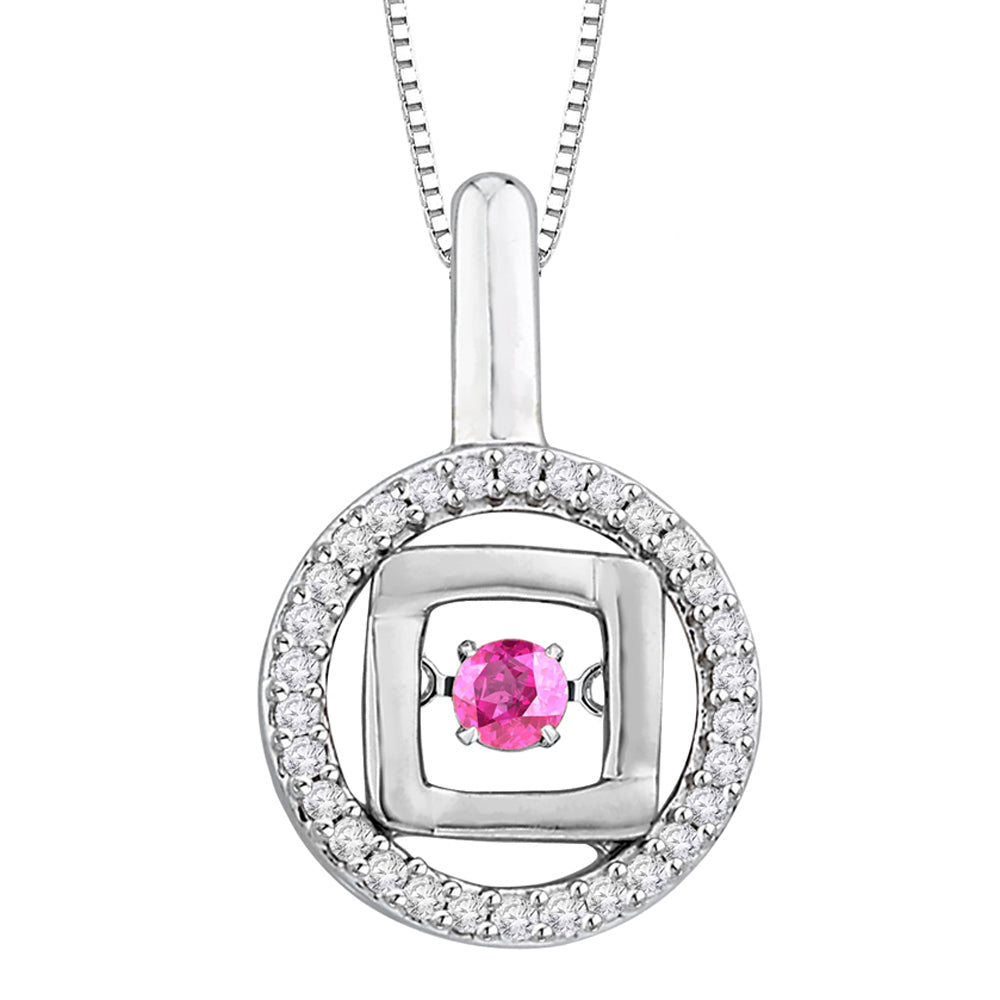 Make a declaration of style with this elegant pendant. This fashion pendant set in gleaming white gold with sparkling diamond and pink sapphire is an absolute style statement giving a gorgeous look for any occasion. This item might contain diamond or gemstones that have been treated to enhance their appearance or durability.