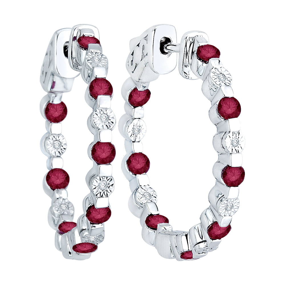 KATARINA 1/20 cttw Diamond with Ruby "In and Out" Hoop Earrings
