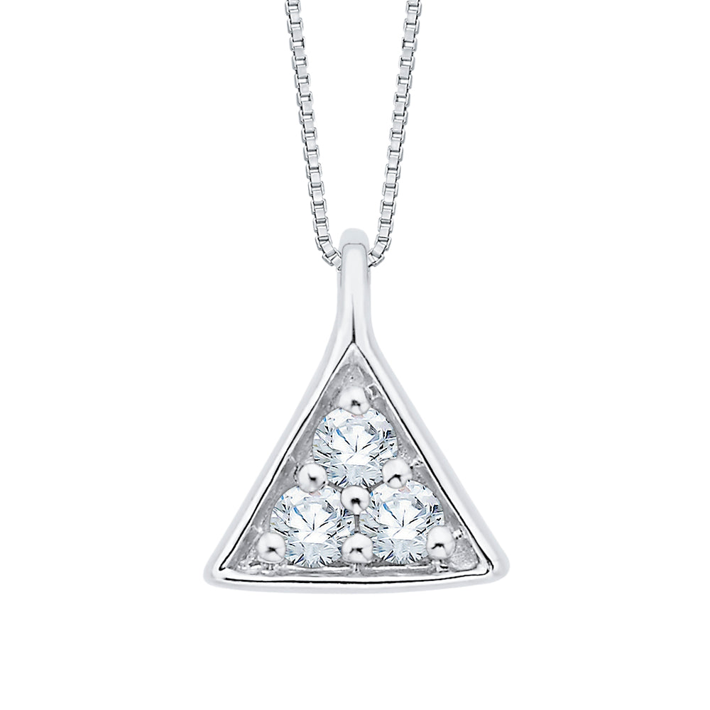 Sparkling white diamonds totaling 1/20 carat adorn this triangle-shaped pendant, accented by a highly polished finish. This jewelry is crafted of luxurious 10-karat gold and secures with a spring ring clasp on a box chain.