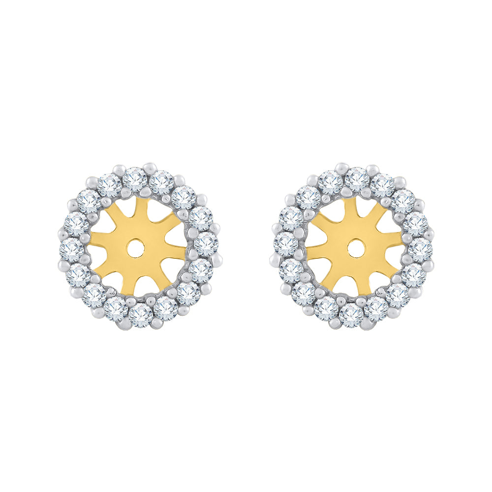 Give your basic studs a whole new look with these earring jackets. Simply slip your earring post through the hole, and it is instantly enhanced by a halo of round-cut diamonds set in lustrous gold. These pair of earring jackets can hold up to 1 ct. (total weight) studs. Studs are not included. Outer diameter: 0.35 in. Inner diameter: 0.20 in.