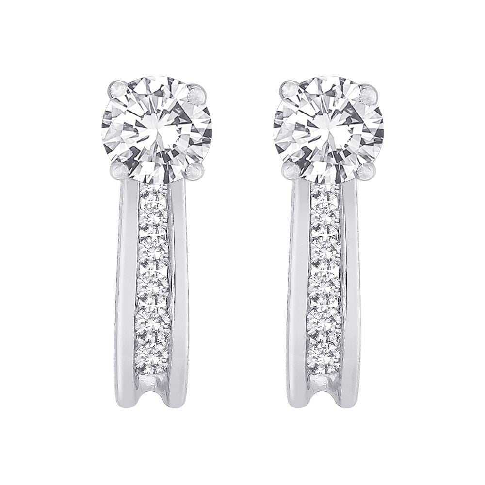 Dress-up your simple studs with these brilliant J-hoop earring jackets. Simply slip your earring post through and add instant sparkle with 24 carats of round brilliant cut diamonds, channel set in 10K gold. The 0.63-inch length style features 12 diamonds, and can accommodate any size stud earring. Studs not included.