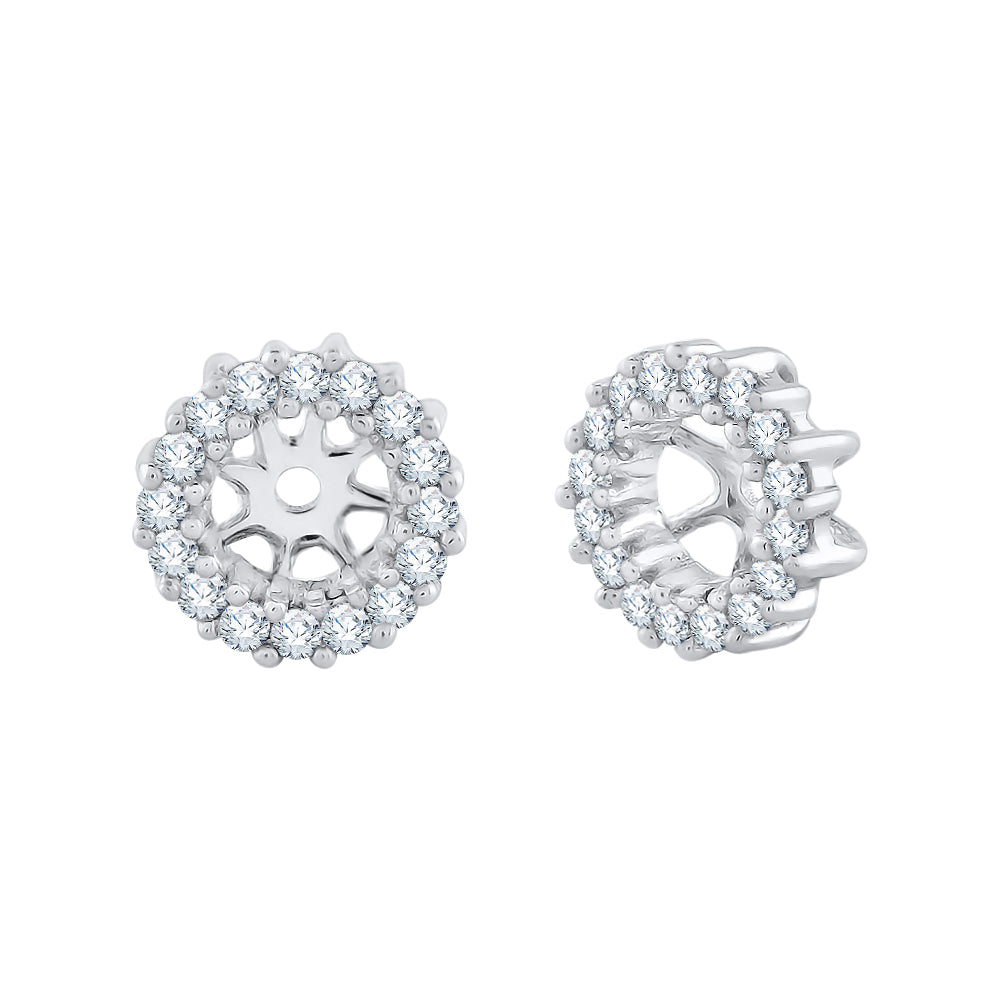 Hello halo! Elevate your simple studs with these sparkling diamond halo earring jackets set in gold. Simply slip your own earring's post through the hole for instant added glamour and versatility. This pair of earring jackets can hold up to 1-carat weight studs.