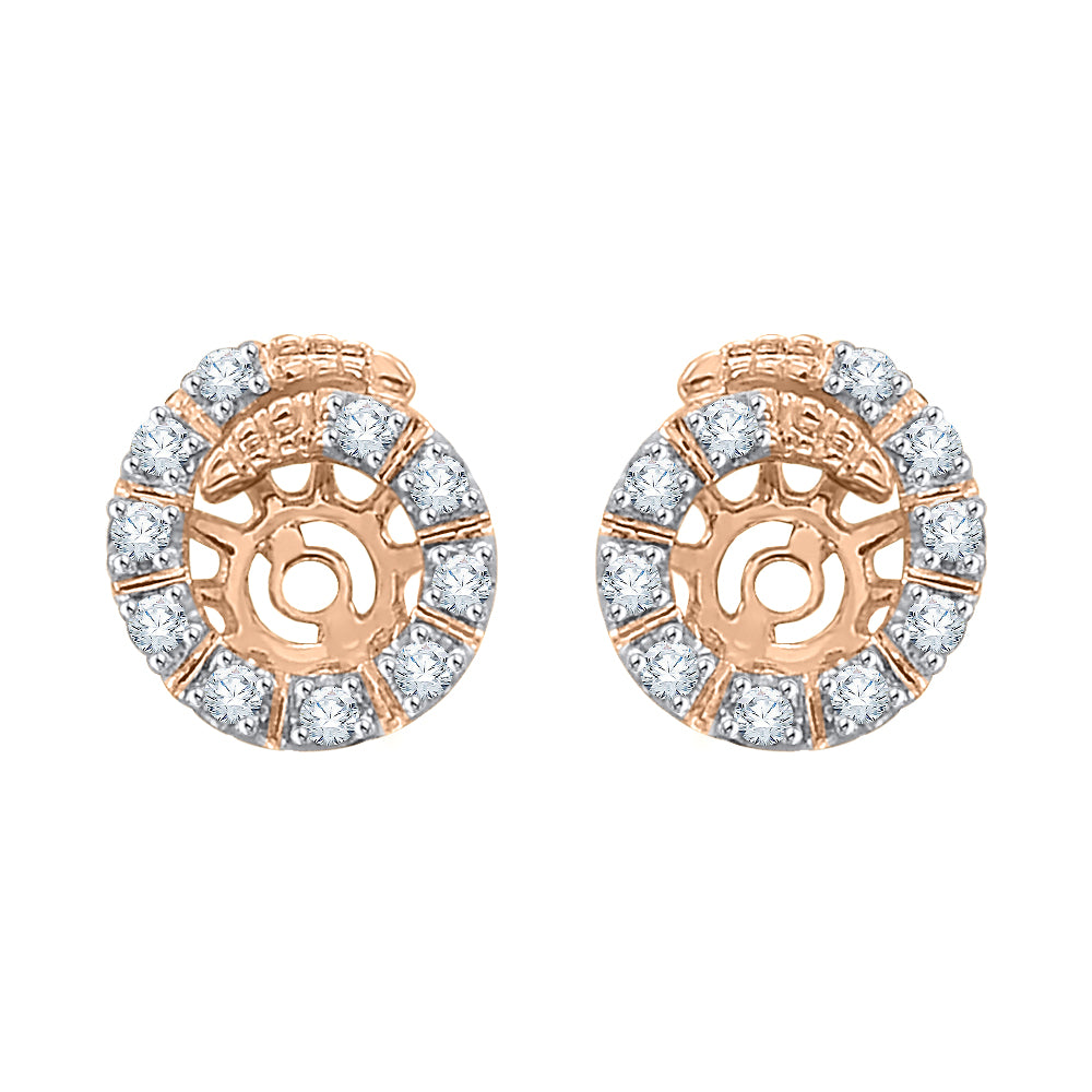 Add a whole new look to your simple stud earrings with these dazzling earring jackets. Simply slip your earring post through the hole, and your earring is instantly haloed by brilliant round cut diamonds set in gold. These pair of earring jackets can hold up to 7/8 ct. (Tw.) stud earrings. Studs are not included.