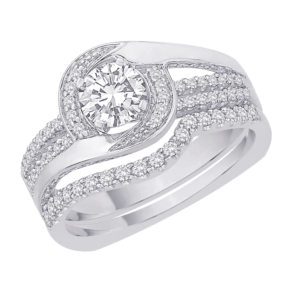 Sparkling and elegant, this diamond engagement ring is a lovely look. Created in 14k white gold, the eye is drawn to the 1/2 ct center diamond among the other shimmering diamonds around it completing the design. Certain to become a treasured favorite, this ring delights with a polished shine.