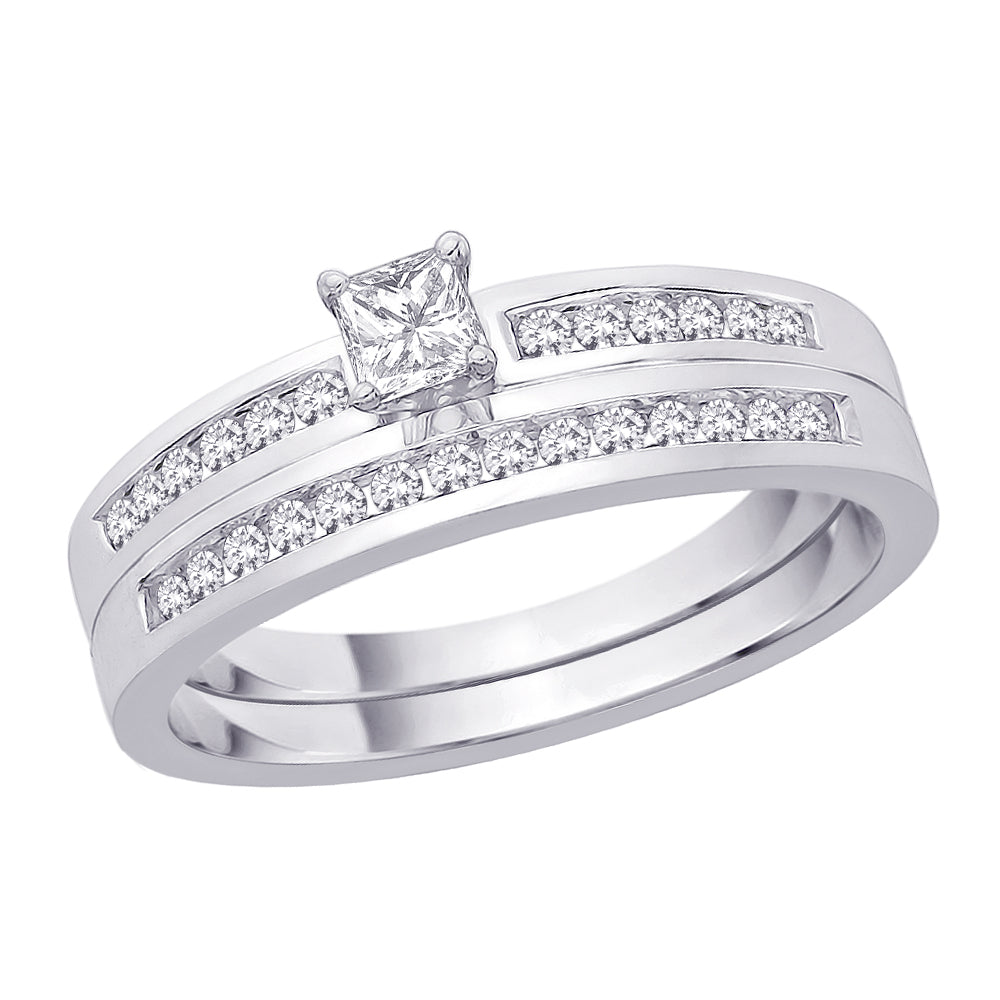 KATARINA Princess Cut Diamond Engagement Ring with Center and Matching Band (3/8 cttw)