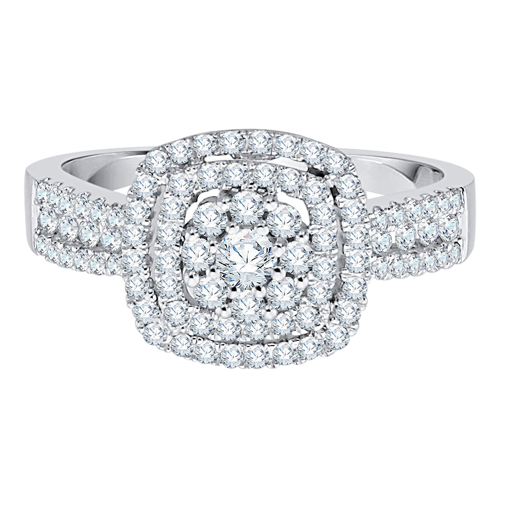 Timeless and exquisite, this breathtaking diamond bridal ring set is just as showstopping as it is elegant and unique. A perfect engagement ring, anniversary gift, or gift for other special occasions, this bold piece of jewelry is sure to show her just how much she means to you. Gleaming gold or silver and 0.59 cttw dazzling diamonds make this ring an undeniably rich and luxurious complement to any woman's collection.