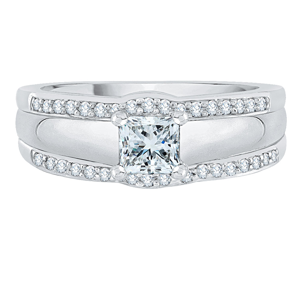 It's a special moment. Promise to give her unconditional love for life with this simple and lovely bridal set ring. This beautiful ring is made in 14k gold and designed to make the moment more romantic.