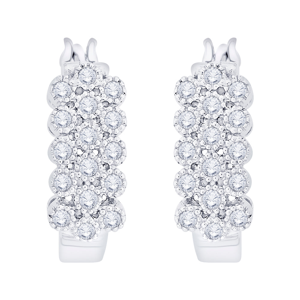 Enhance the look of any outfit with the 14k,10k gold and sterling silver diamond hoops. These earrings feature a 14k,10k gold and sterling silver construction with round-cut diamonds in a bezel setting that you will love.
