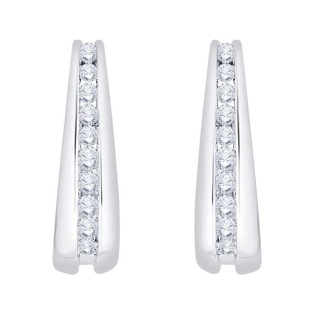 KATARINA 1/2 cttw Channel Set Diamond J-Hoop Earrings