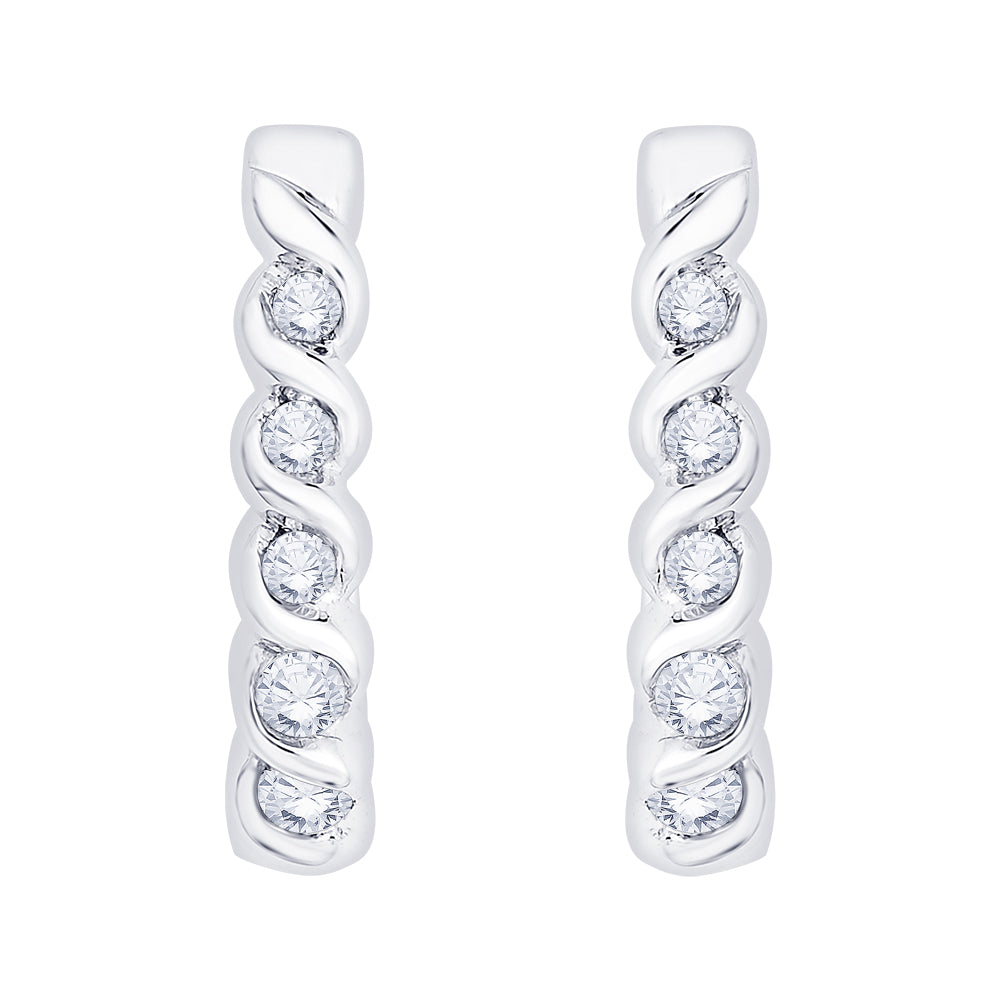 These stylish hoop earrings showcase round-cut sparkling diamonds in channel setting. Crafted in 14k,10k gold and sterling silver, these diamond hoops are versatile enough to be worn with every ensemble, and are the perfect gift for any occasion.