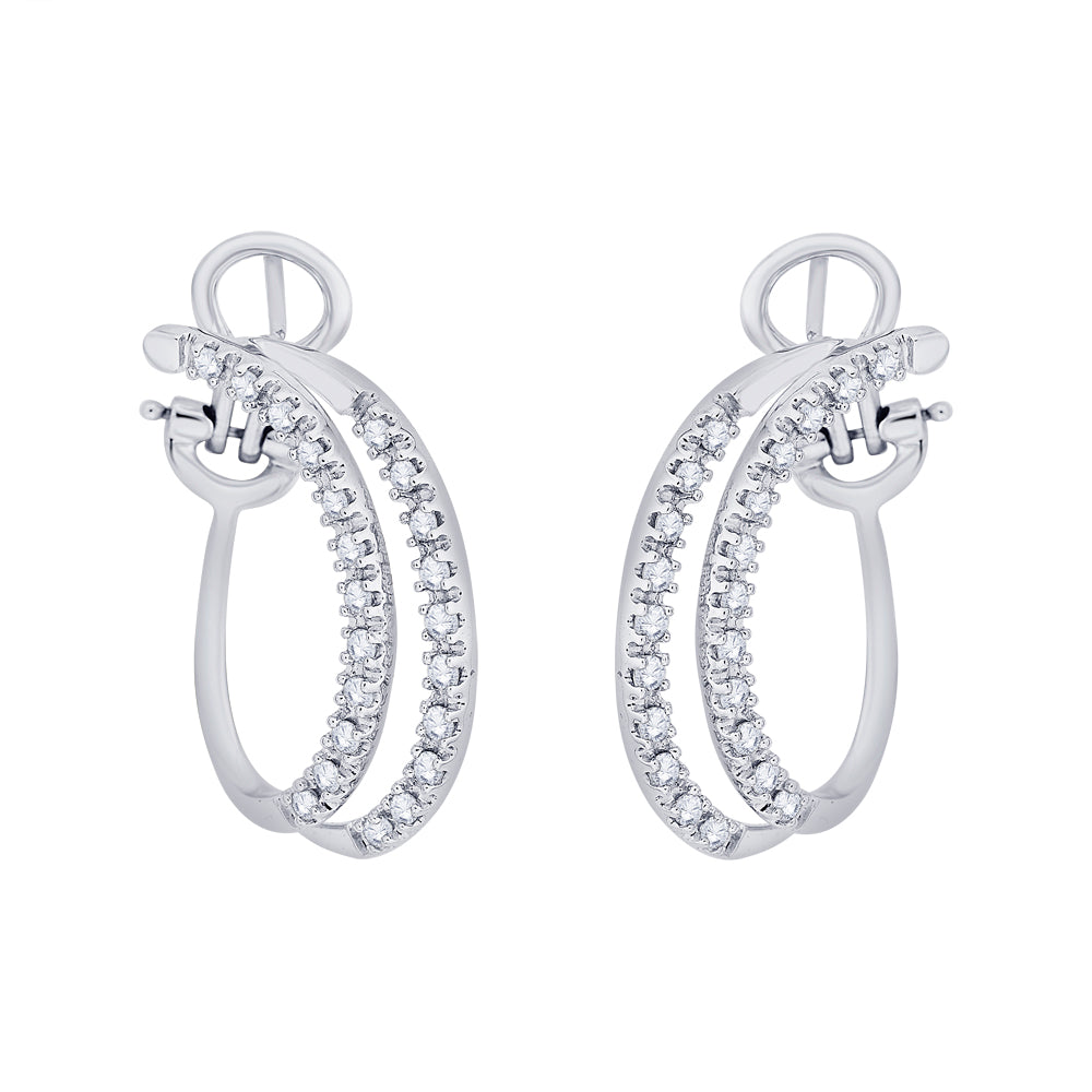 This beautiful pair of hoop earrings features exquisite diamond accents. The timeless design of this jewelry ensures that your look will be elevated to perfection. The earrings are crafted in 14k,10k gold and sterling silver and is secured with omega back.