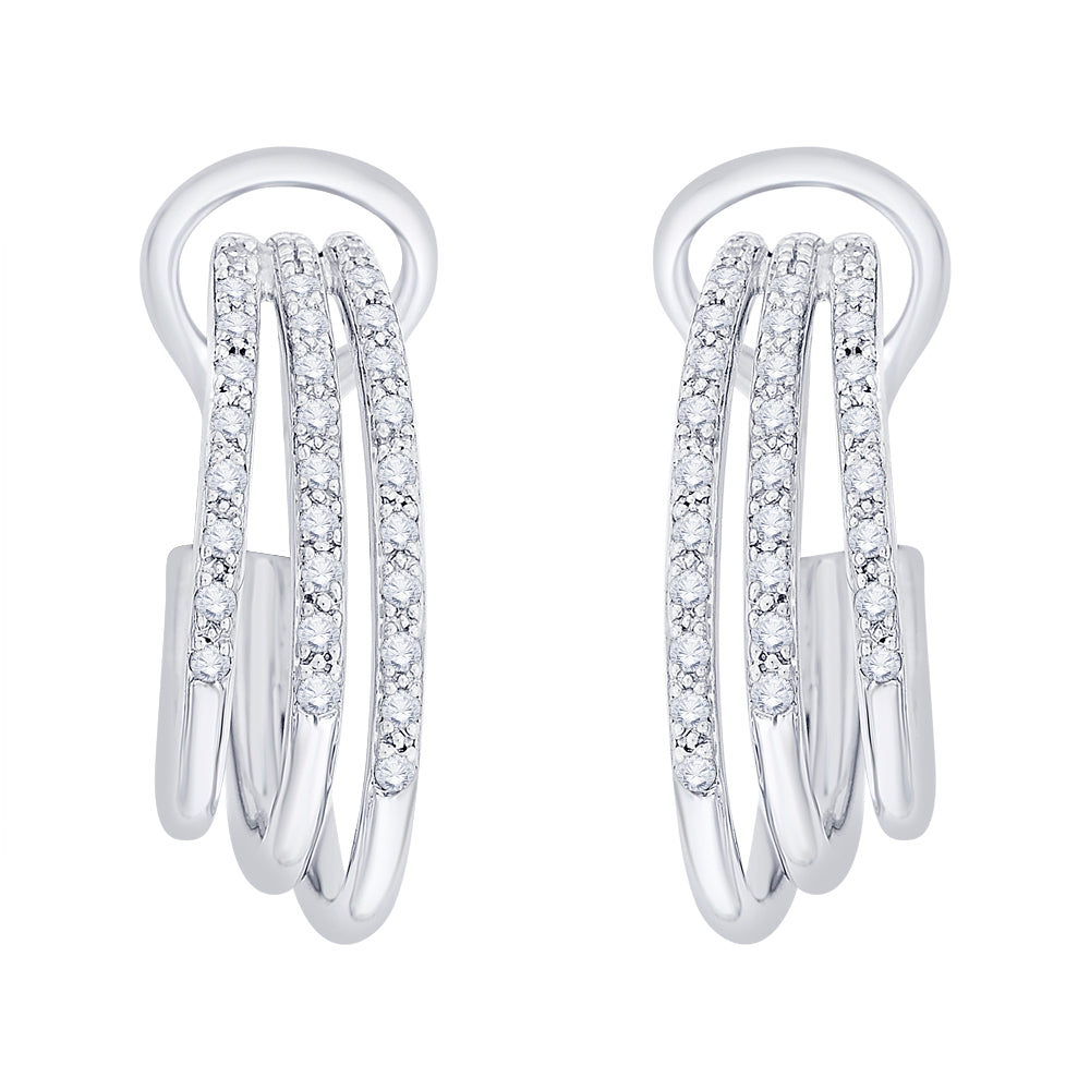 These elegant looking, stylish hoop earrings is crafted in 14k,10k gold and sterling silver with brilliant round cut diamonds along the hoops. Secured with omega back, these earrings give a rich look along with your style.