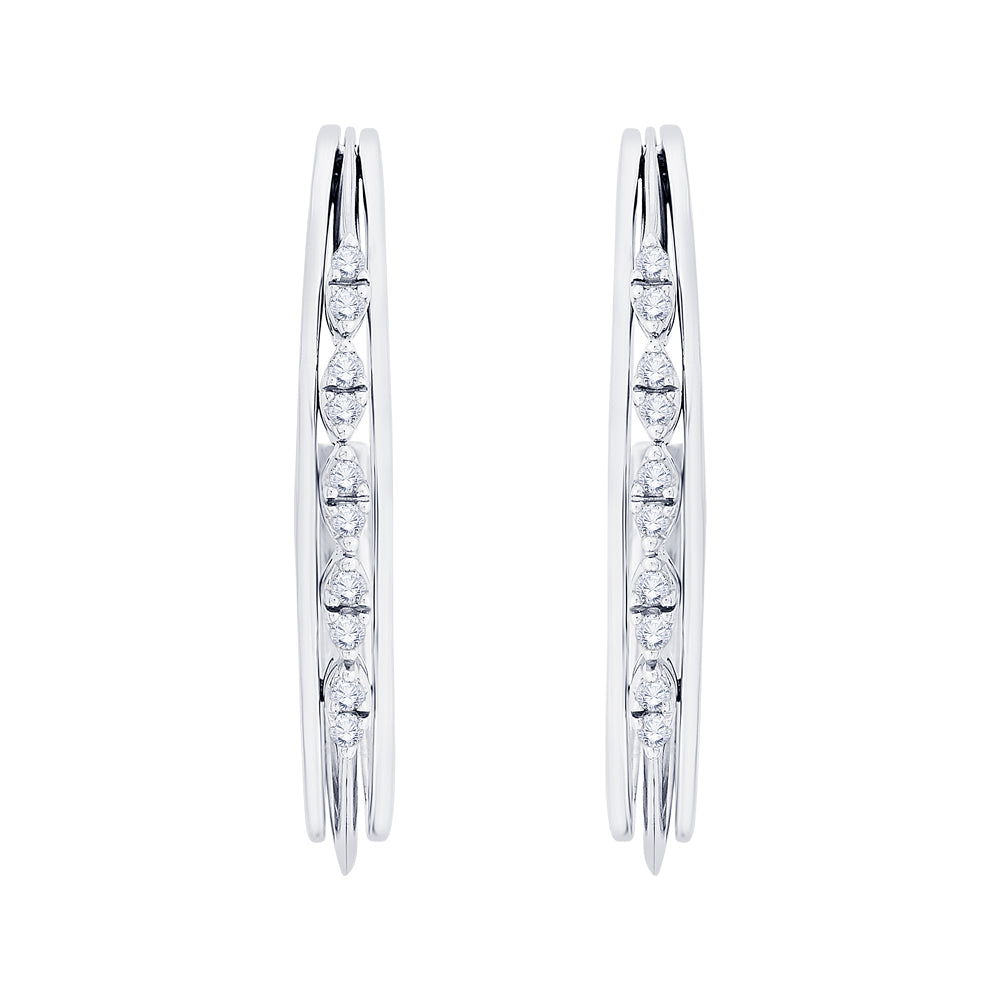 These fashionable diamond hoop earrings crafted in 14k,10k gold and sterling silver and channel set with sparkling round cut diamonds, these gold earrings are used for almost any occasion and making the perfect affordable gift.