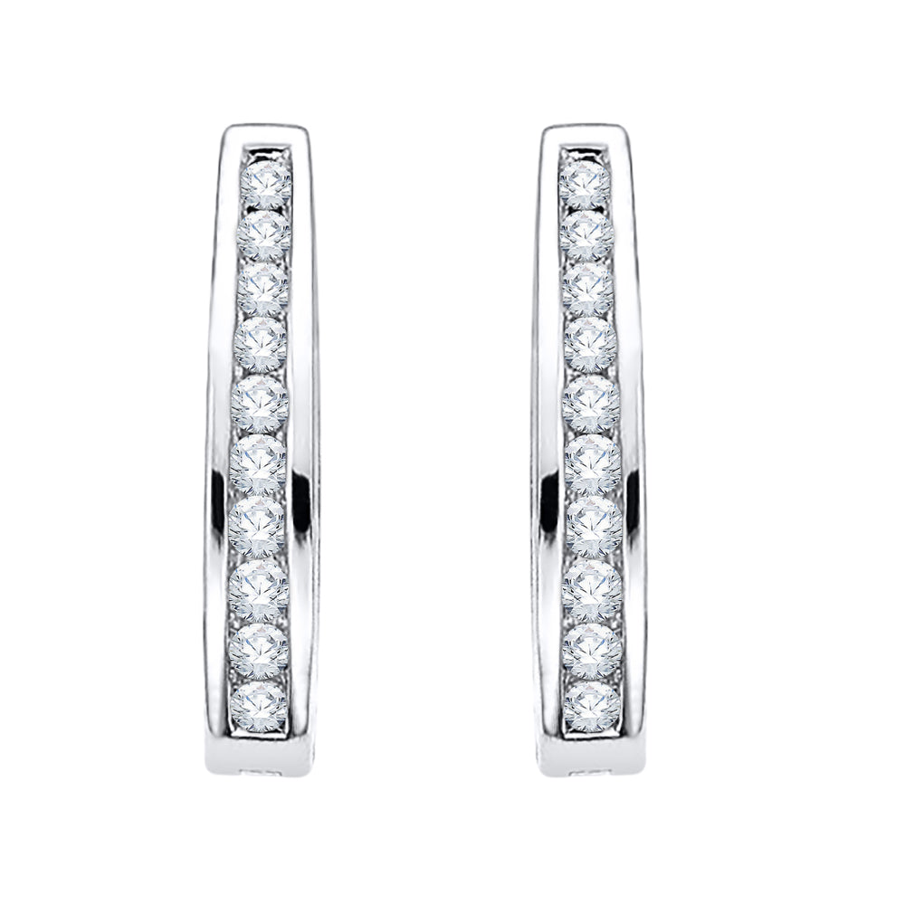 These classic earrings showcase the classic combination of gold and round brilliant cut diamonds of 1 ct. (Tw.) to perfection. Cool, lustrous gold is exquisitely crafted into huggies featuring dazzling channel set diamonds. A perfect addition to any collection.