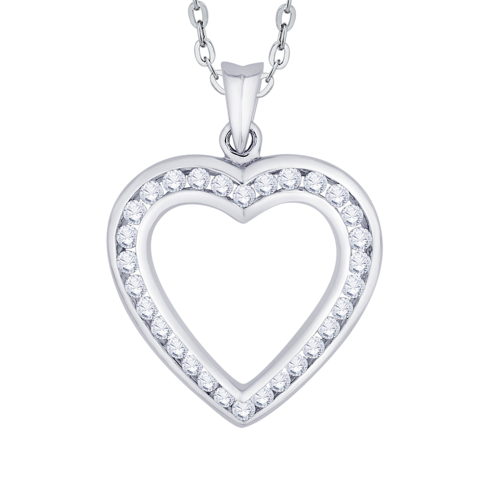 Accessorize your daily ensemble with this beautiful pendant necklace. Crafted from 14k,10k gold and sterling silver to complement your unique style. This necklace features sparkling round cut diamonds channel set in heart design.