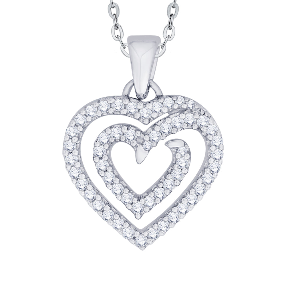 This diamond heart pendant celebrates your romantic love story. Crafted in 14k,10k gold and sterling silver, this elegant design features an outer diamond-lined heart. Perfect for every day wear and formal engagements, this exquisitely crafted necklace is sure to cause a fuss.