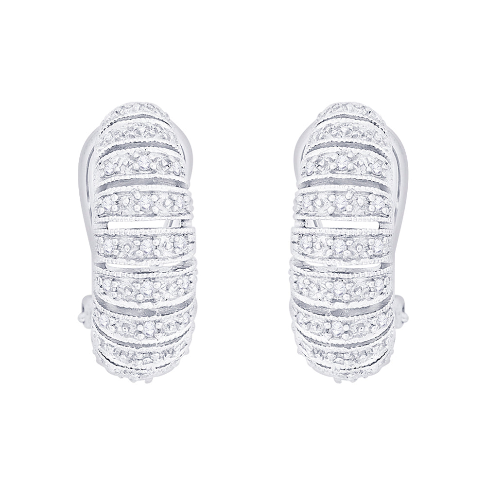 Simple elegance is what makes this a timeless piece of jewelry. Shimmering are prong-set all around these magnificent 14k,10k gold and sterling silver fashion earrings secure with omega closures.