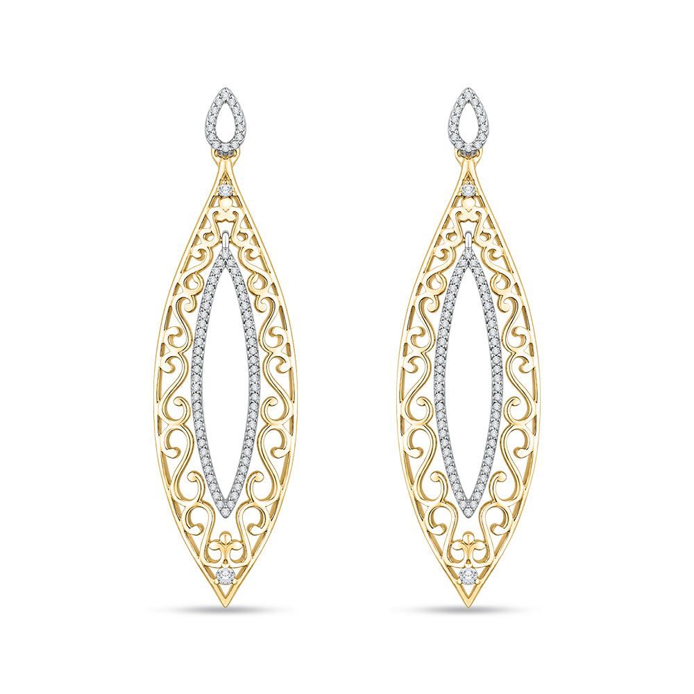 Make a declaration of style with these elegant thread earrings. These fashion earrings set in gleaming white and yellow gold with sparkling diamond is an absolute style statement giving a gorgeous look for any occasion.