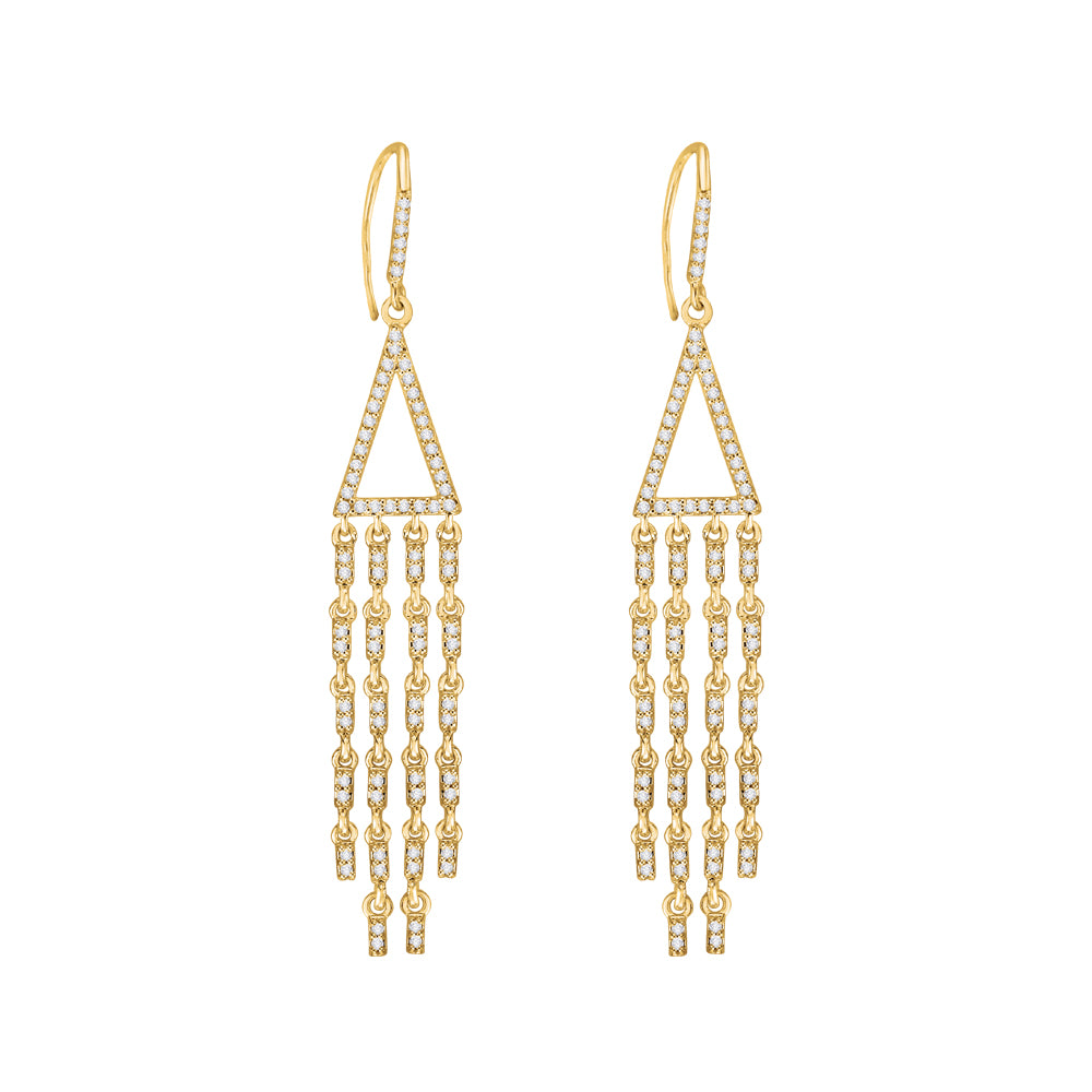Make a declaration of style with these elegant thread earrings. These fashion earrings set in gleaming yellow gold with sparkling diamond is an absolute style statement giving a gorgeous look for any occasion.