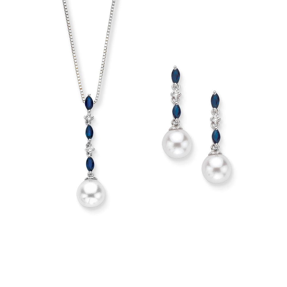 KATARINA Diamond Jewelry Set with Fresh Water Pearl and Sapphire (0.08 cttw)