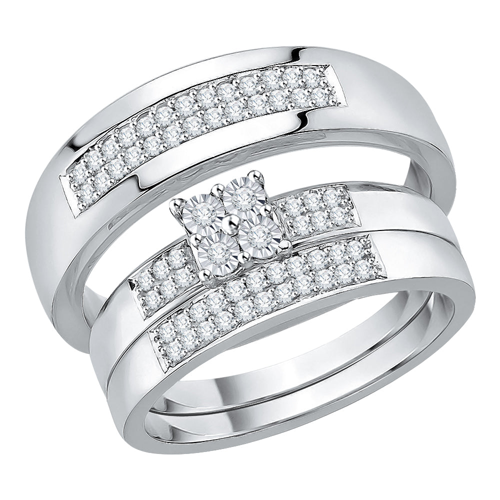 KATARINA 1/3 cttw Diamond Pave Setting Trio Wedding Ring Set