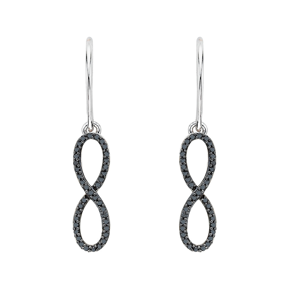 Lend any ensemble classic elegance with these black,blue treated diamond infinity earrings. The intricate design and shimmer of 10k white gold and sterling silver convey timeless sophistication. This item might contain diamond or gemstones that have been treated to enhance their appearance or durability.