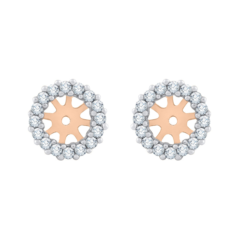 Give your basic studs a whole new look with these earring jackets. Simply slip your earring post through the hole, and it is instantly enhanced by a halo of round-cut diamonds set in lustrous gold. These pair of earring jackets can hold up to 1 ct. (total weight) studs. Studs are not included. Outer diameter: 0.35 in. Inner diameter: 0.20 in.