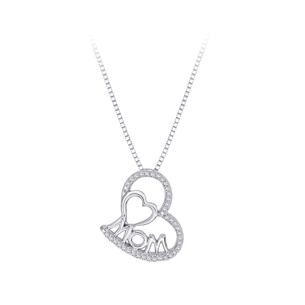 The cool gleam of sterling silver combine to a beautiful effect in these uniquely elegant mom double heart pendant. Dramatic design is exquisitely rendered in sterling silver with "mom" for that special relationship in your life. Mom pendant is a pretty accessory and makes a lovely gift for your Mom.