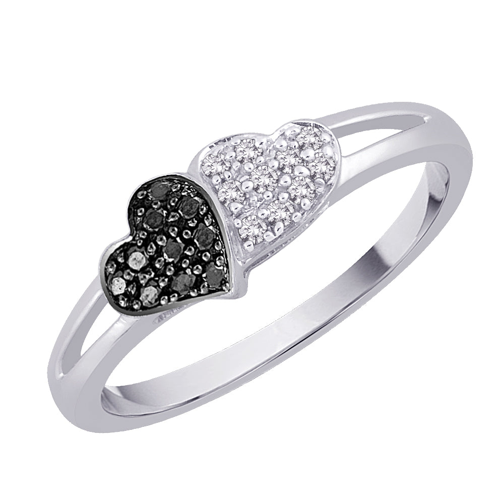 KATARINA Black and White Diamond Heart Promise Ring (1/10 cttw)