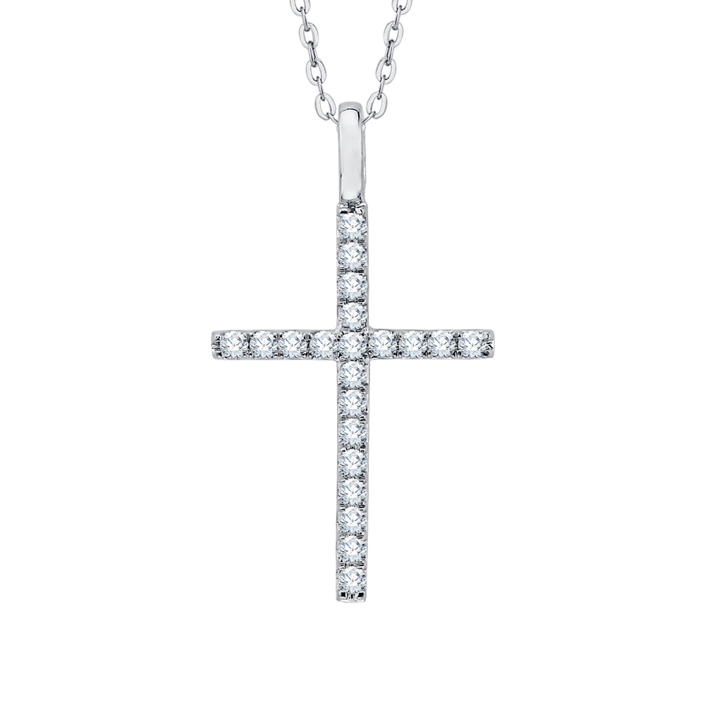Keep your faith ever-present with this delicate diamond cross pendant necklace. Round diamonds line the surface of this classic religious symbol for an exquisite sparkle.
