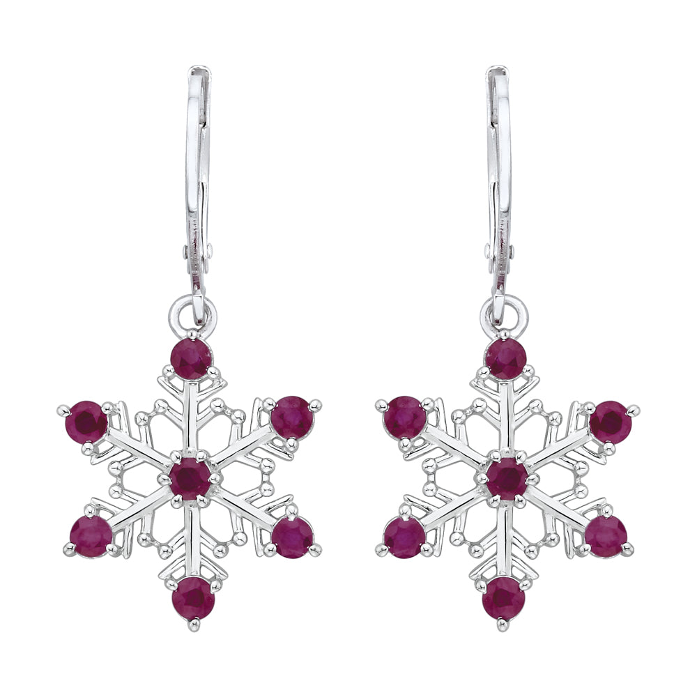 KATARINA 1 1/5 cttw Ruby "Snow Flake" Dangle Earrings