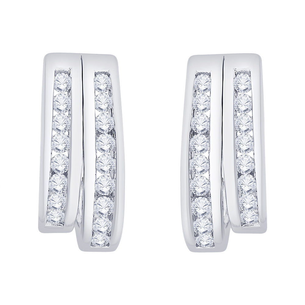 KATARINA 1/2 cttw Channel Set Diamond J-Hoop Earrings