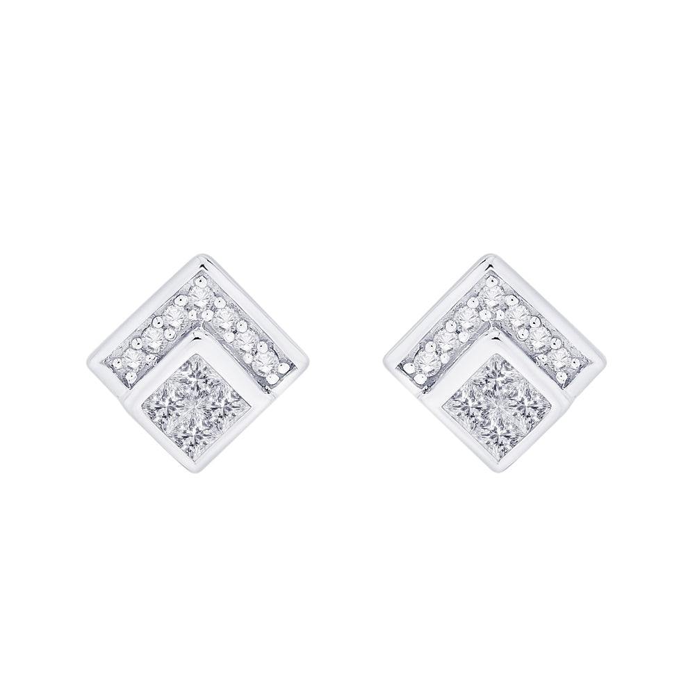 KATARINA 1/2 cttw Prong Set Round and Princess Cut Diamond Stud Earrings