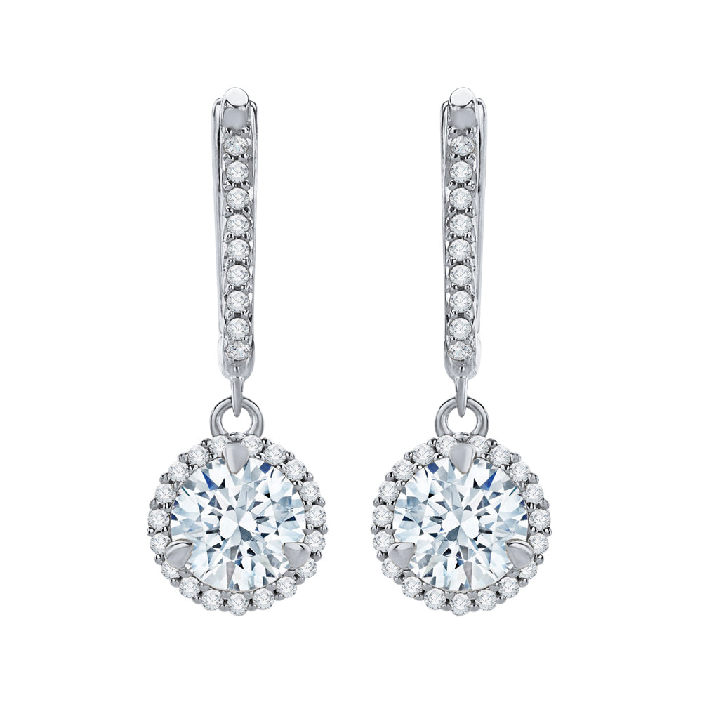 Dress up your outfits with these lab grown diamond dangle huggie earrings. These earrings are crafted of 14k gold and secure with hidden-safety-clasp.